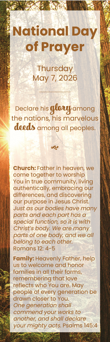 For more information, go to nationaldayofprayer.org.